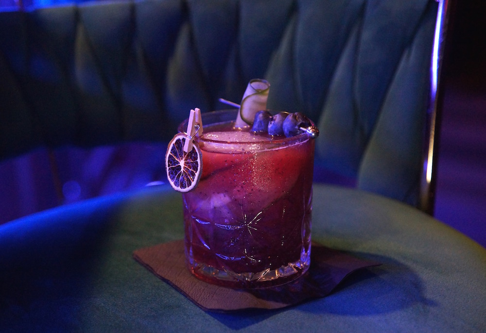 Another menu standout is the Cotton Candy Crash–a bright, boozy blueberry twist on a classic margarita.