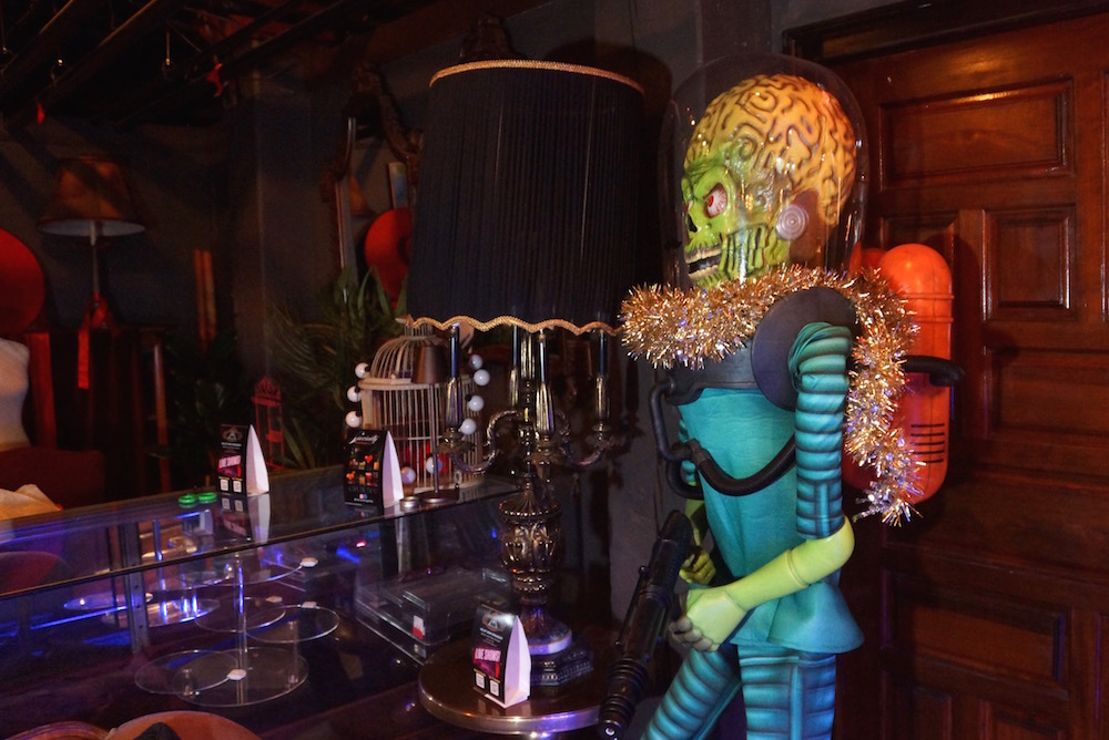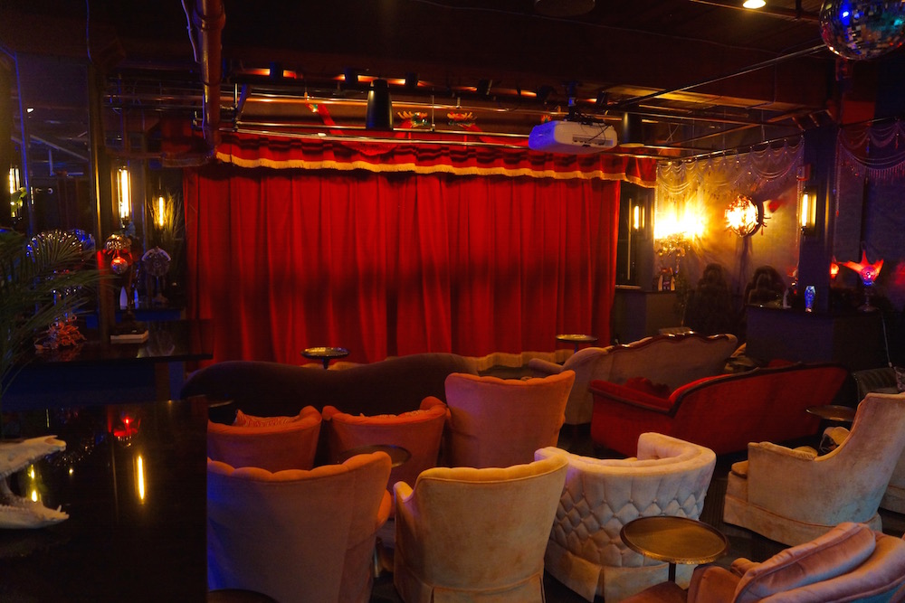 Moody lighting and vintage decor lend a sexy, mysterious vibe to a venue clearly born of an artist’s heart. That artist is founder Echo, a classically trained opera singer and fine artist that opened the club as a BYO in 2023, and then later a full bar in April 2025. She has a BFA from the Philadelphia Academy of Fine Arts and a MFA from the New York Academy of Art. Echo says about the space: