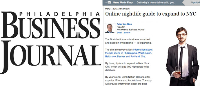 Check out the writeup we got in the Philadelphia Business Journal about our New York expansion with DrinkNYC.com. Be sure to tell your New York friends to sign up so they can be the first to know the details on our sweet upcoming launch party. Read more here.
